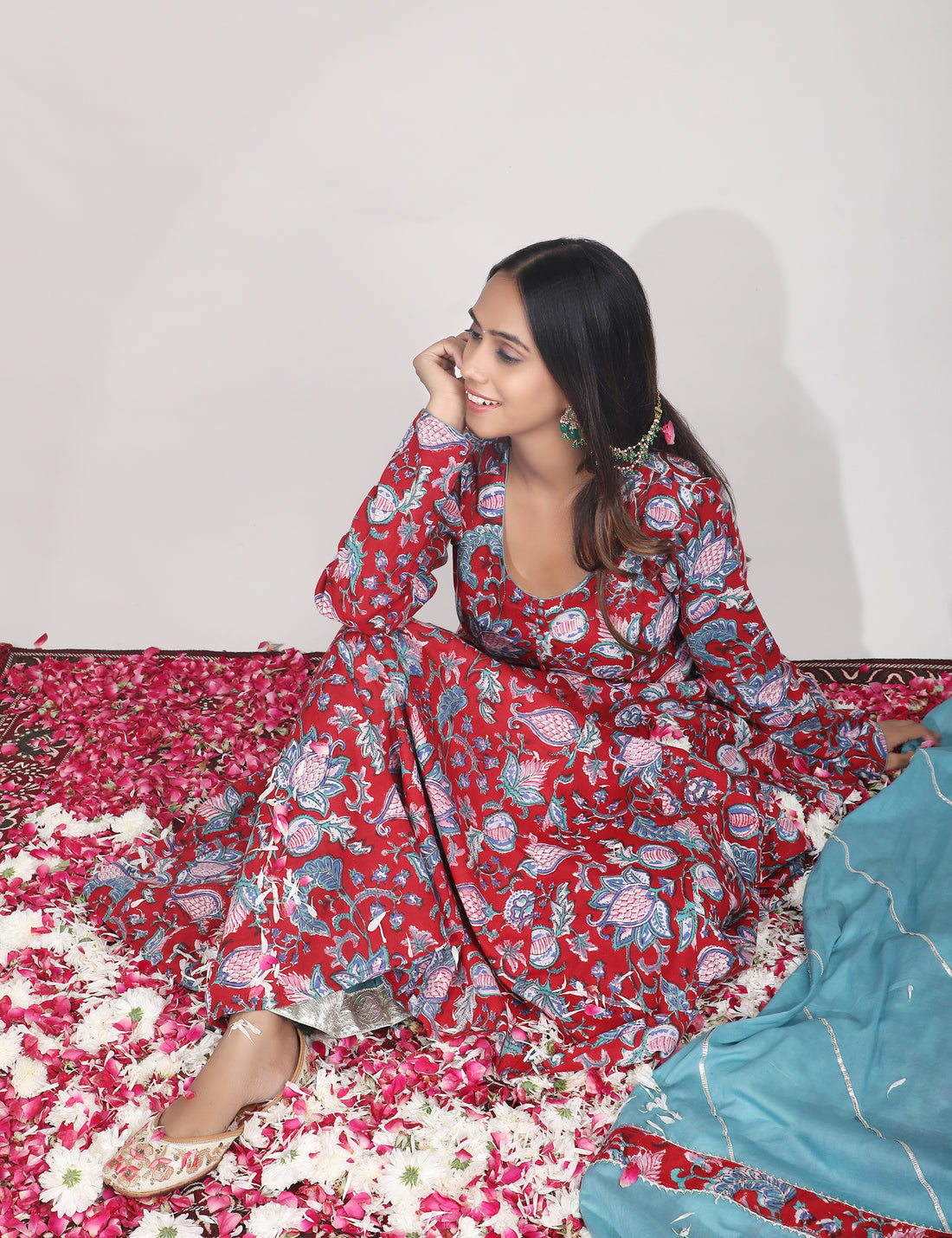 Dual bloom kurta set with afghani pants and dupatta