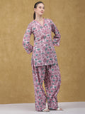 Soft, graceful, and rooted in tradition, the Pushpika Kurta with Farshi Salwar is crafted in breathable cotton and adorned with delicate floral prints. The straight-fit kurta features a flattering neckline and full sleeves, while the flowing farshi salwar adds an effortless, elegant drape. Designed for comfort and everyday charm, this set is perfect for festive mornings, intimate gatherings, or relaxed day wear.